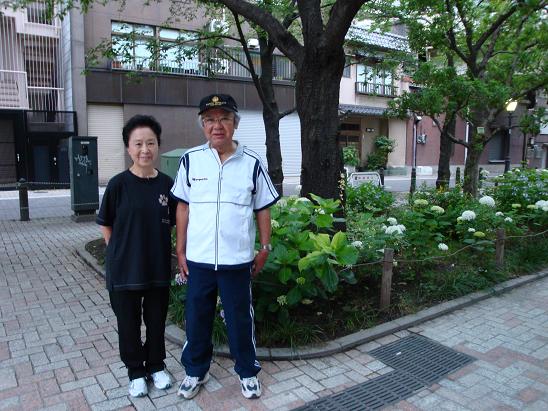 隅田公園駐輪場の花川戸入口のところで体操に来ていらっしゃるお二方が紫陽花をご覧になっていたので、カメラに収まっていただいた。