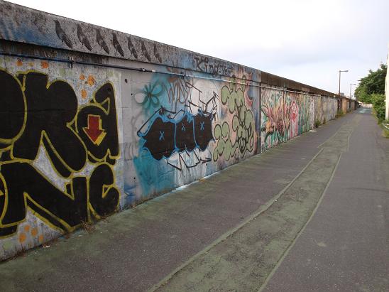 白乃至クリーム色の1色の塗料で消すのだが、幾日もしないうちにその上からまた新しい芸術作品が描き出される。まあ、この繰り返しで、イタチごっこですなぁ。