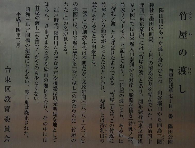 榎本其角(1661~1707年、宝井其角ともいう)あたりは、この渡しを使って吉原通いをしたのかもしれない。