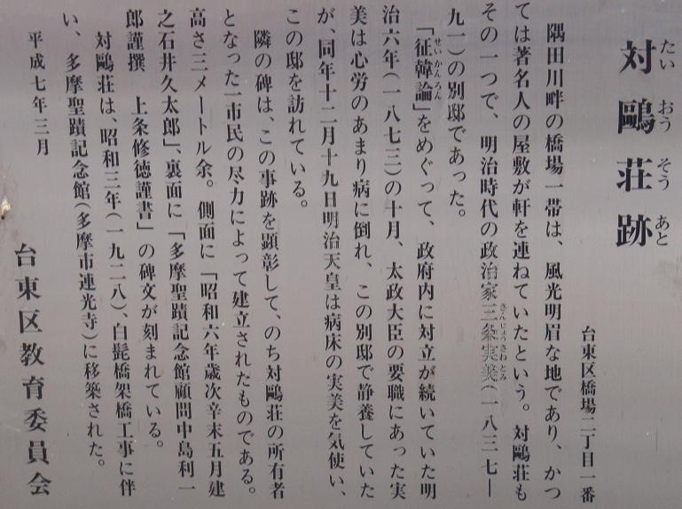 燈台下暗し。まだこの対鴎荘跡碑の写真はブログに入れていなかったワイ。