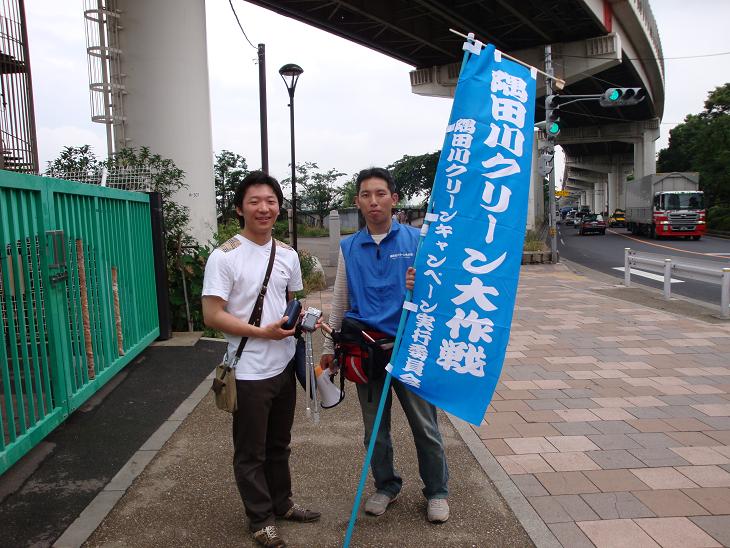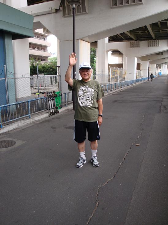 吾妻橋を渡って北上。白鬚橋でワンさんに出会う。先日の酸化チタン瓦の回答のお礼を言う。