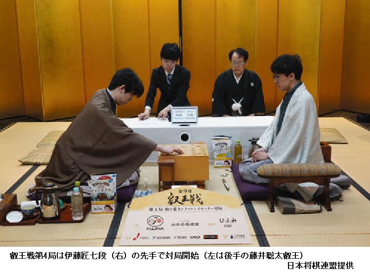 午前午前9時から始まった対局は、1勝2敗とかど番の後手藤井が踏ん張って2勝2敗とし、防衛に望みをつないだ。藤井の逆転4連覇か、伊藤の初戴冠か、注目の最終第5局は6月20日、甲府市「常磐ホテル」で行われる。