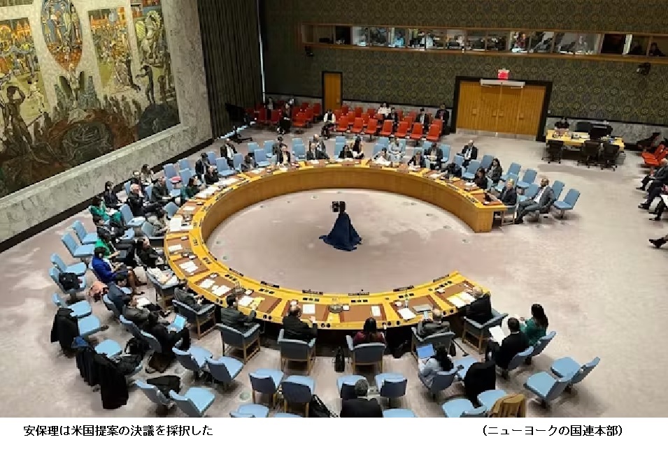 今回安保理が採択した決議は「イスラエルが受け入れた新たな計画を歓迎し、ハマスにも受け入れるよう求め、両当事者に対して遅滞なく無条件で完全に履行するよう促す」としている。