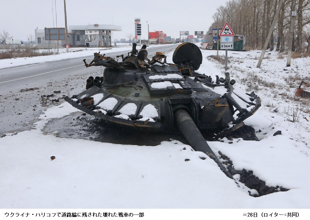 ウクライナのマリャル国防次官は27日、ロシアの侵攻開始以降、ロシア軍兵士約4300人を殺害したと表明した。一方、ロシア国防省は27日、ウクライナ南部のヘルソンや南東部のベルジャンスクを完全に封鎖し、周辺の空港や都市も支配下に置いたと発表した。米国防総省の高官はロシア軍によるウクライナの首都キエフへの進軍が滞っているとの分析を示したうえで、ウクライナ軍の強い抵抗や燃料不足が背景にあるとの見方を示した。