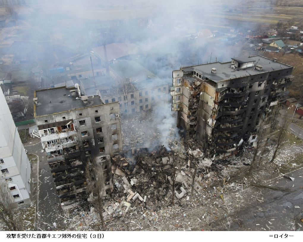 ウクライナで戦闘激化 ロシア軍、チェルノブイリ占拠 ―― ロシアのウクライナへの侵攻が激しさを増している。24日には首都キエフに近い空港で戦闘が起き、ロシア軍が制圧したもようだ。キエフの北に位置するチェルノブイリ原子力発電所をロシア軍が占拠するなど、侵攻の勢いが増している。
