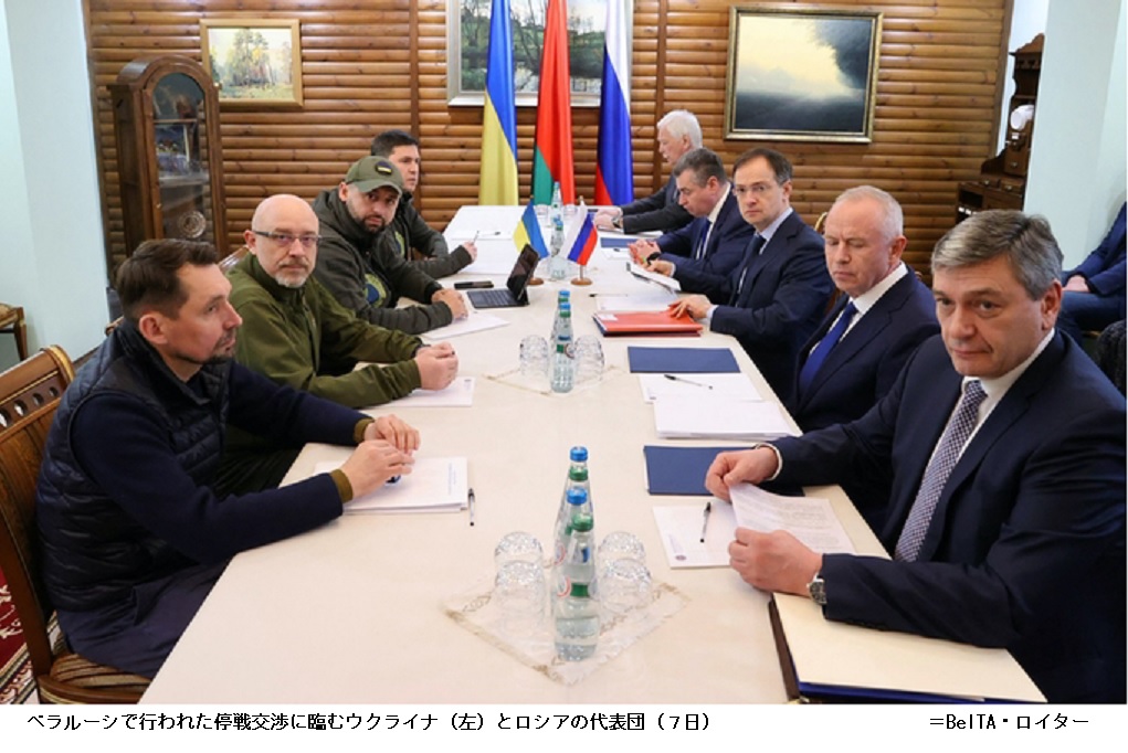 3回目の対話、停戦見通せず 人道回廊は「小さな進展」 ―― ロシアとウクライナは7日、3回目の停戦の対話をベラルーシで実施した。ロイター通信によるとロシア側は終了後、報告すべき前進はなかったとの認識を示した。ウクライナ側は戦闘が続く地域で住民を避難させる「人道回廊」については進展があったと明らかにしたが、実現するかは依然不透明だ。