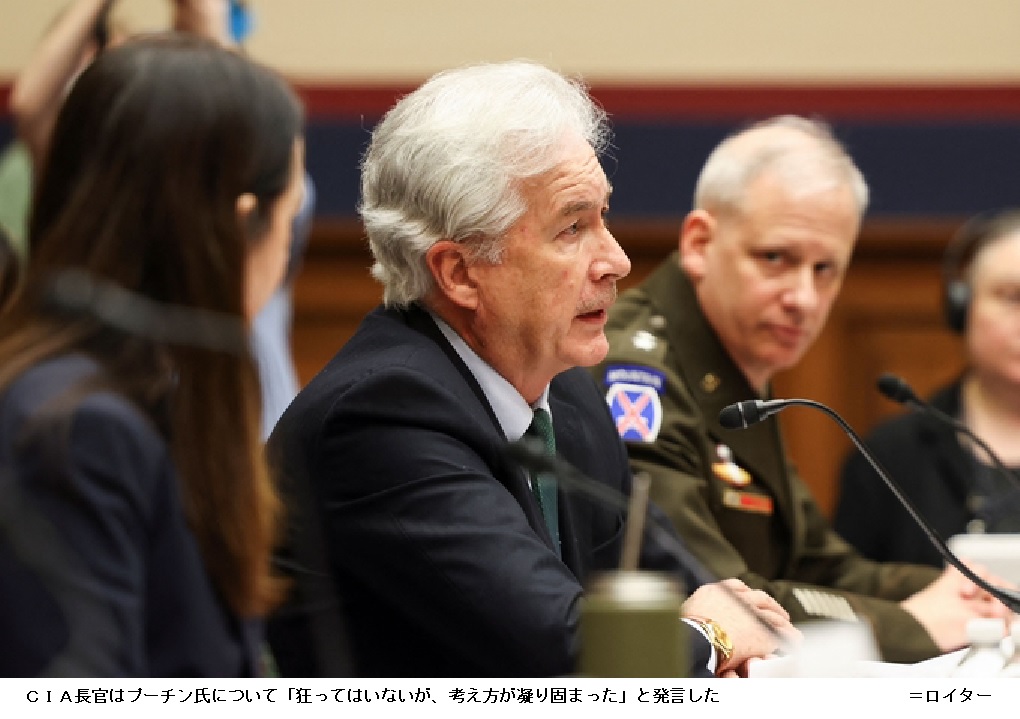 プーチン氏「狂ってないが考え硬化」 米情報機関トップ ――米中央情報局(CIA)のバーンズ長官は8日、米議会でウクライナに侵攻したロシアのプーチン大統領の精神状態について証言した。「狂ってはいないが、時間の経過とともに彼の考え方が凝り固まり、彼に意見できる側近が減ったために扱うのが極端に難しくなっている」と述べた。