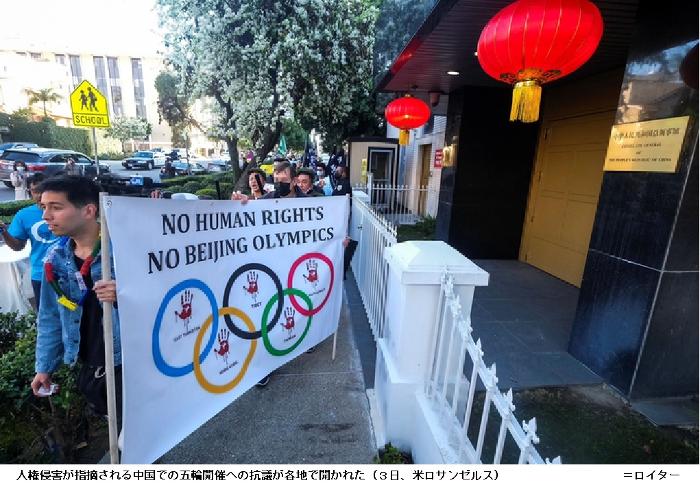 英BBCは米英などの外交ボイコットに触れ「最も分断された五輪が始まる」と伝えた。ロイター通信によると、開会式に先立ち、米国やスイスの国際オリンピック委員会(IOC)本部前など各地で、人権侵害が指摘される中国での五輪開催に抗議するデモが開かれた。