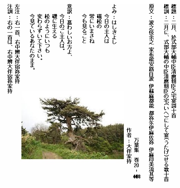 巻20‐4498:はしきよし今日の主人は礒松の常にいまさね今も見るごと
