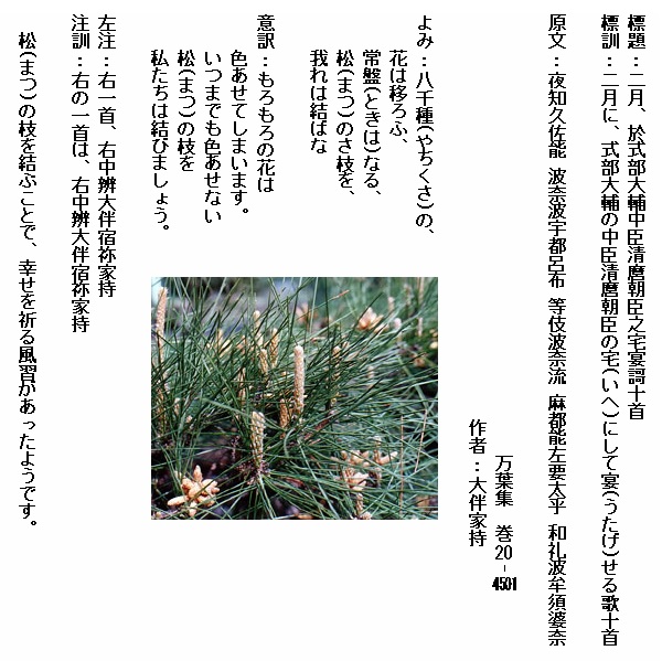 巻20‐4501:八千種の花は移ろふ常盤なる松のさ枝を我れは結ばな
