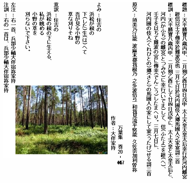 巻20‐4457:住吉の浜松が根の下延へて我が見る小野の草な刈りそね