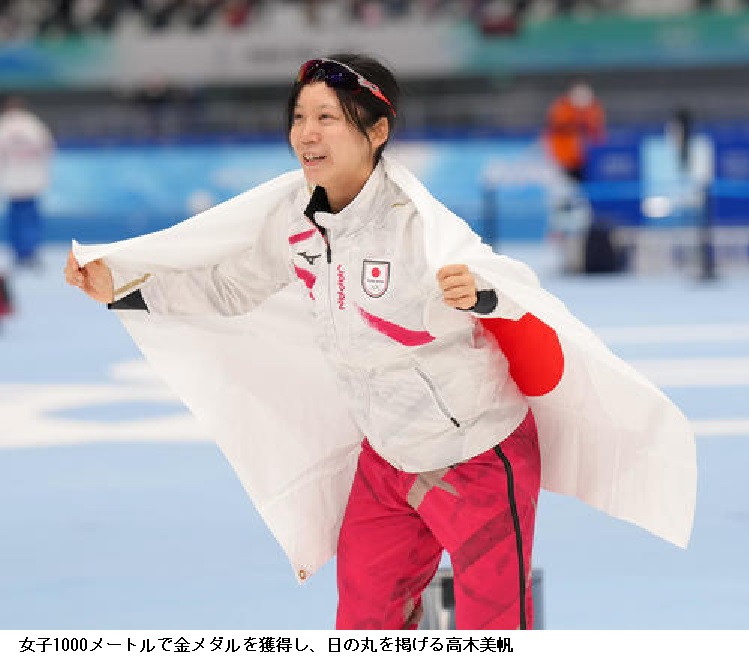 前回銅メダルの女子1000メートルで五輪記録を0秒37更新する、1分13秒19で優勝。500、1500メートル、団体追い抜きの銀に続く4個目のメダルは、18年平昌五輪の自身と98年長野五輪のジャンプで3個を獲得した船木和喜を上回り、1大会としては冬季五輪の日本最多。通算7個目のメダルも夏冬合わせた日本女子最多を更新した。