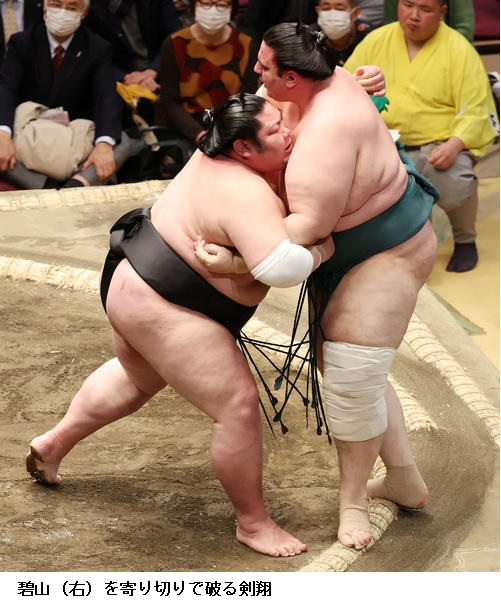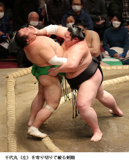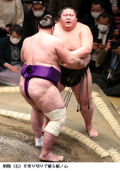 ●剣翔 先に上手を取りたかったけど、立ち遅れて(栃ノ心に)先に上手を取られてしまった。(締め込みを黒色に変更したことについて)新入幕の時に1場所だけつけたもの。再入幕だけど新入幕の気持ちで土俵に上がれるようにと。