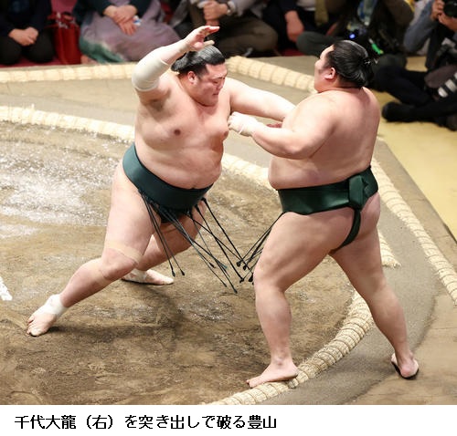 ▽豊山に千代大龍は豊山が突き出しで勝ちました。