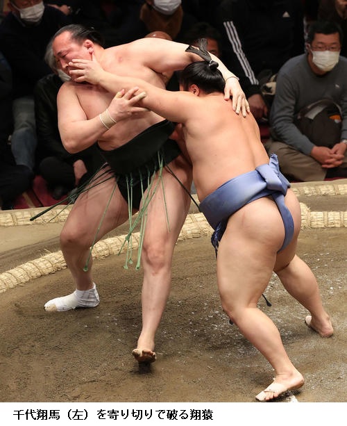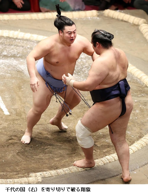 ▽千代の国に翔猿は翔猿が寄り切り。