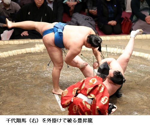 ▽豊昇龍に千代翔馬は豊昇龍が外掛け。