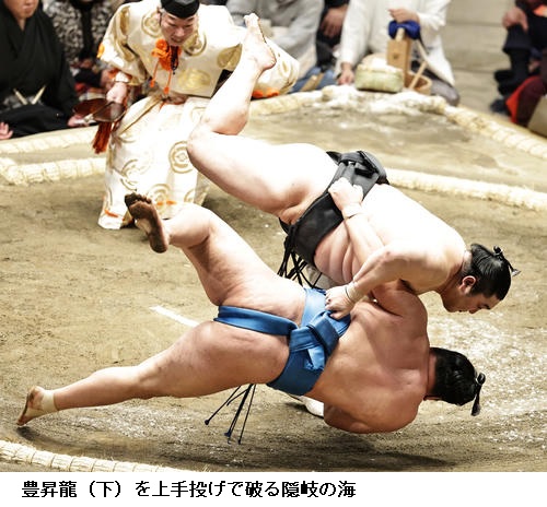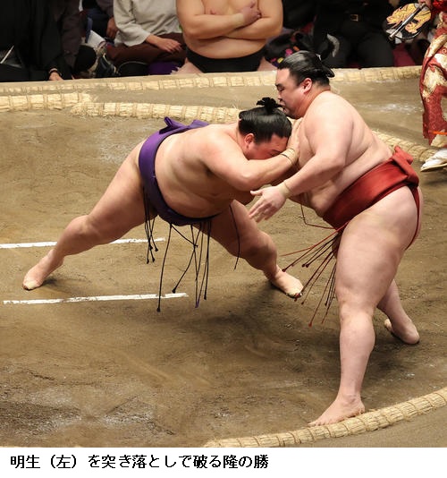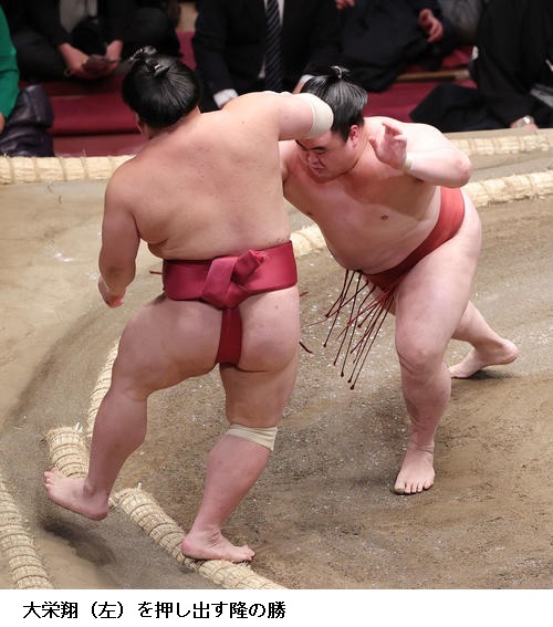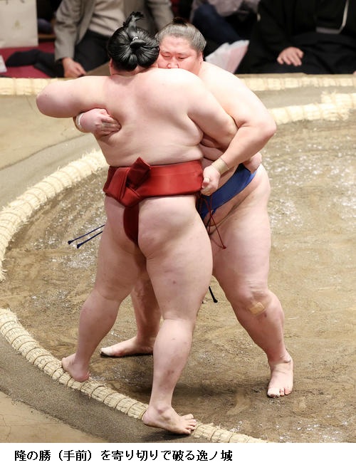 ●隆の勝 流れはよかったが止まってしまったのが問題。(逸ノ城に)つかまってしまって逃げられなくなった。動いて動いてじゃないと、あの大きな相手にはダメでしたね。