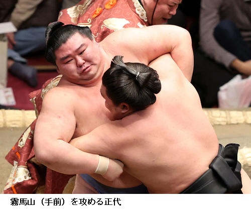 大関・正代は霧馬山に攻め込まれながらも小手投げで退け、「初場所をいい成績で終わることができたらことし1年はいい成績になると思う。そういう意味でもいい成績で終われるよう頑張りたい」と前を向いていました。