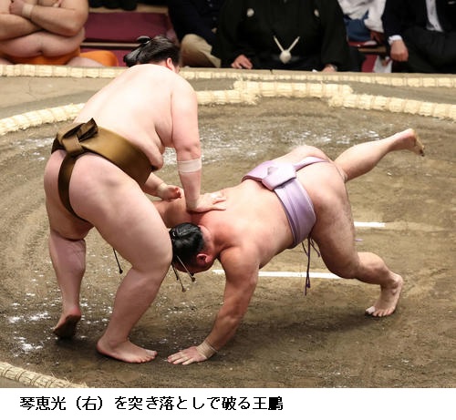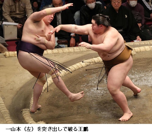 ▽一山本に王鵬は王鵬が突き出し。