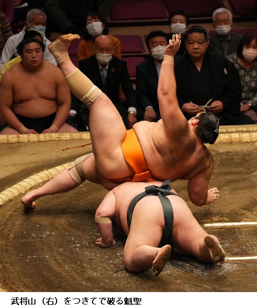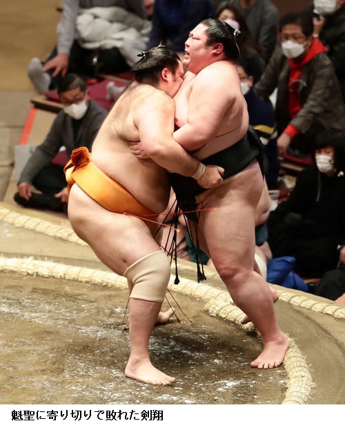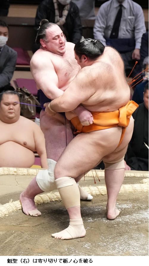 ☆魁聖「相手は突っ張ってくると思って、下からいこうと思ってうまくいった。途中、腰がやばかったけど。5番勝ったんで、早く勝ち越しできたらと思う」
