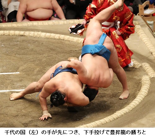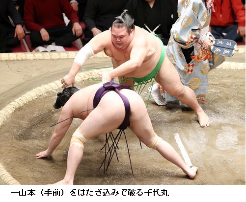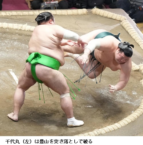 ▽千代丸に琴ノ若は琴ノ若が引き落とし。