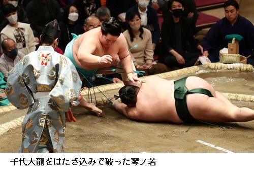 ☆琴ノ若「先に自分から動けた。いい流れで最後まで取り切れた。1日1日しっかり場所で出し切ろうと思ってやっている。気持ちを切らさずにこの後も臨んでいきたい」