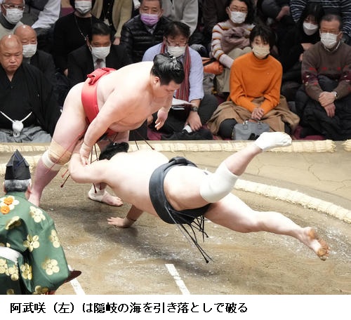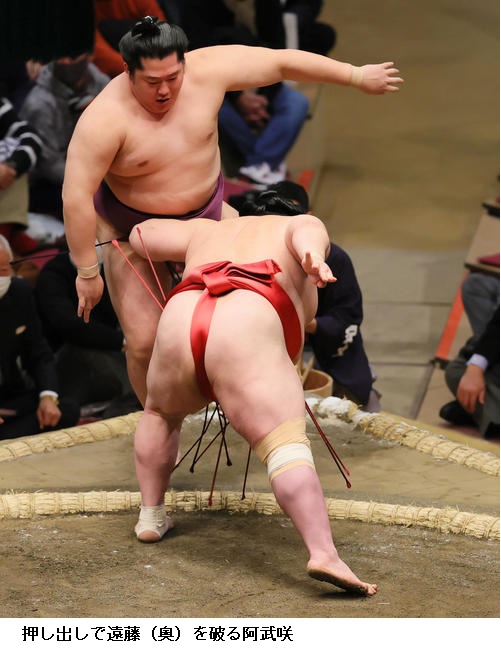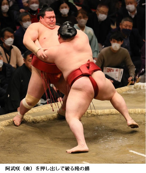 ▽阿武咲に隆の勝は隆の勝が押し出し。