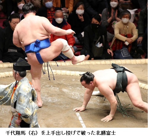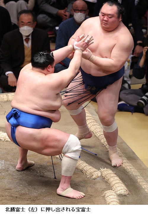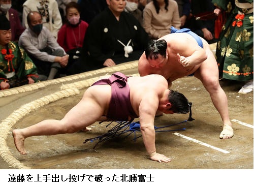 ☆北勝富士「しっかり当たれて、攻防のある相撲を取れた。体も動けているので良かった。前に圧力をかけていたので、焦りはなかった」