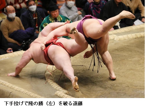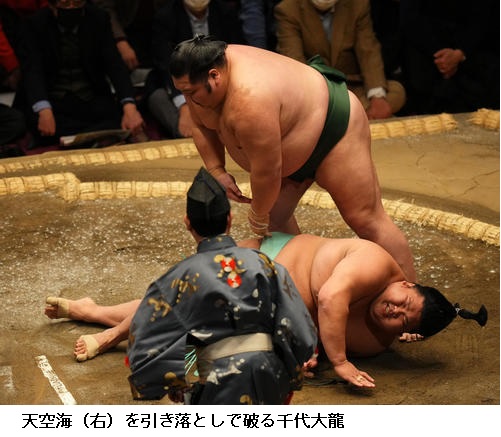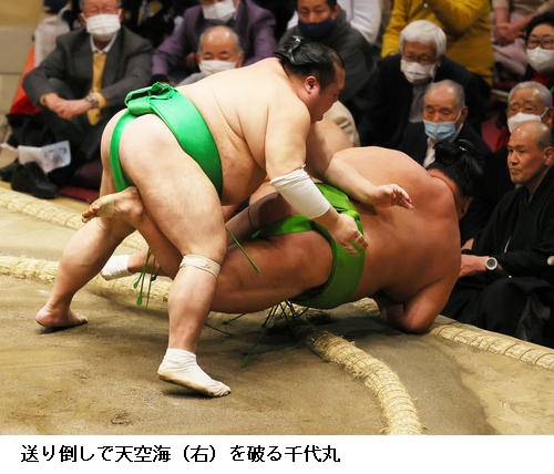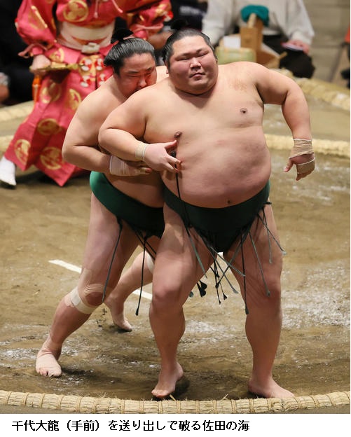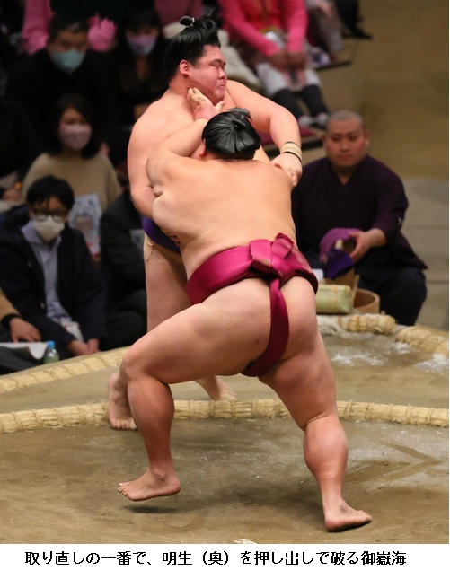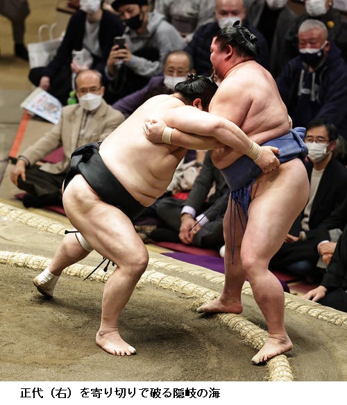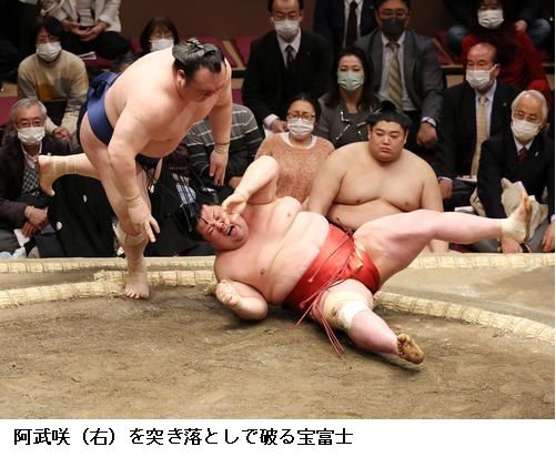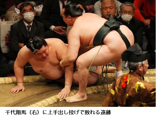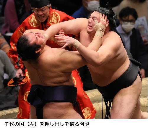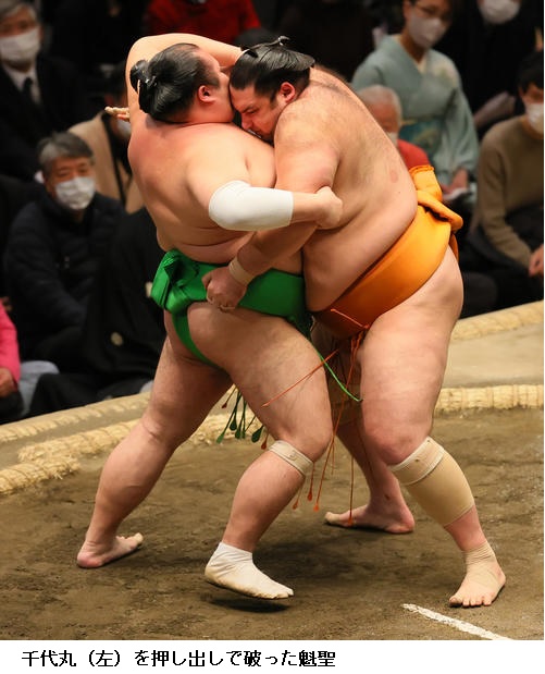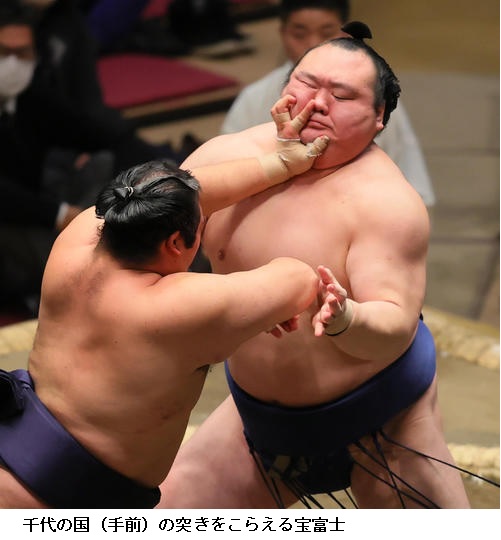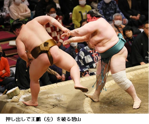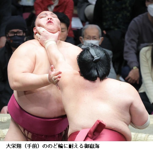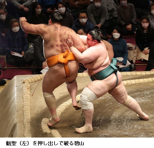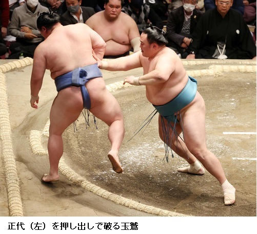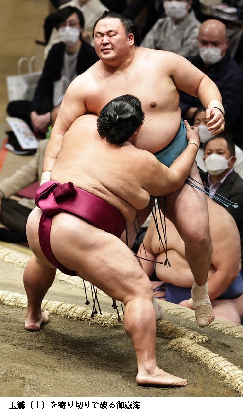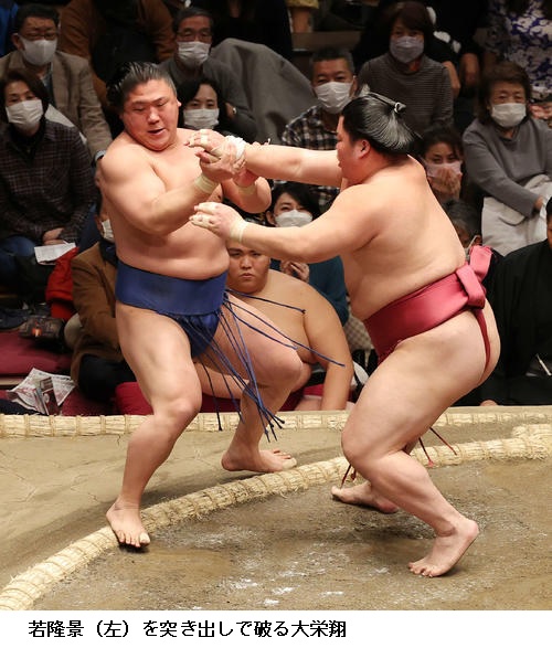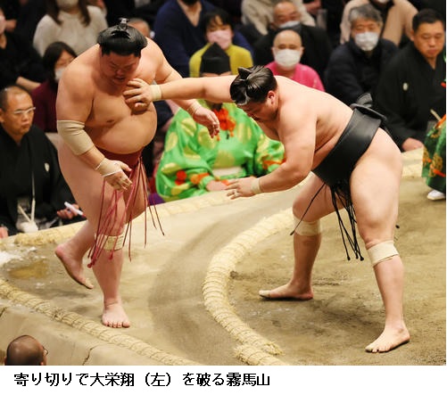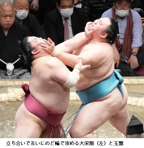 一方、敗れた大栄翔は「自分の攻めが出来たが、まだまだ勝てなかった。横綱は強い。下半身も上半身も強いので、自分はまだまだ。勉強したい」と反省のことばを並べていました。 (NHK WEB NEWS 2022年1月9日 18時54分)