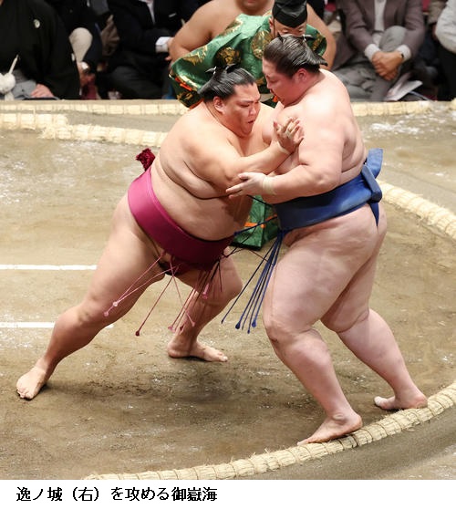 ▽逸ノ城に御嶽海は御嶽海が押し出し。