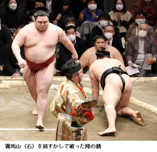 ▽隆の勝に霧馬山は隆の勝が肩透かし。