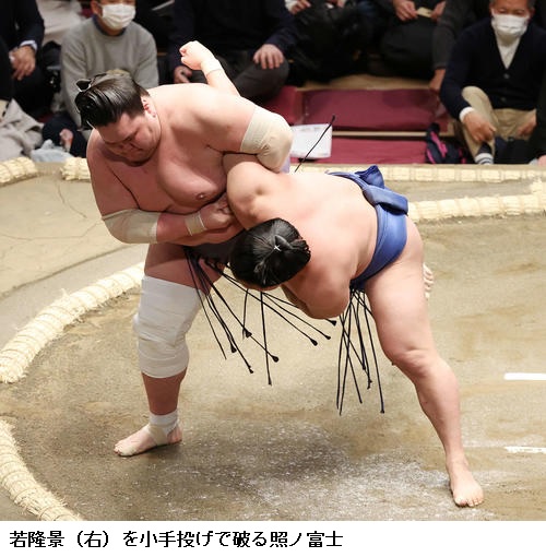 ▽若隆景に横綱・照ノ富士は照ノ富士が小手投げで勝ちました。