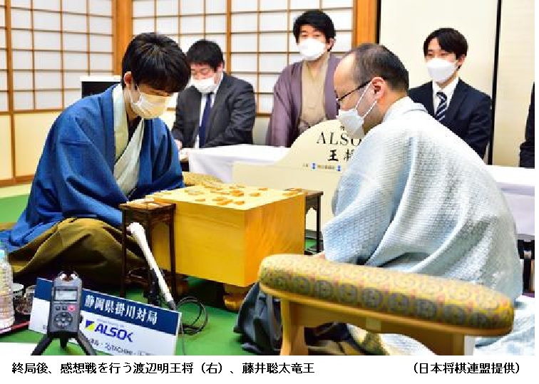 【王将戦】藤井聡太竜王5冠へ死闘制す「きわどく詰んでいる」渡辺王将攻略 ―― 将棋の史上最年少4冠、藤井聡太竜王(王位・叡王・棋聖=19)が王将初奪取と5冠獲得に好スタートを切った。9日午前9時からの2日制で行われていた第71期ALSOK杯王将戦7番勝負第1局(静岡県掛川市「掛川城 二の丸茶室」)で、10日午後7時27分、139手で渡辺明王将(名人・棋王=37)を下した。展開がもつれて双方1分将棋となる激戦の末、王将戦掛川対局6戦全勝の「冬将軍」を攻略。開幕局を制した。第2局は1月22、23日、大阪府高槻市「山水館」で行われる。
