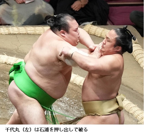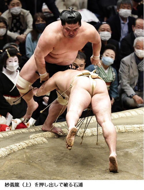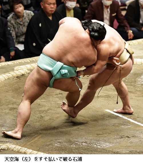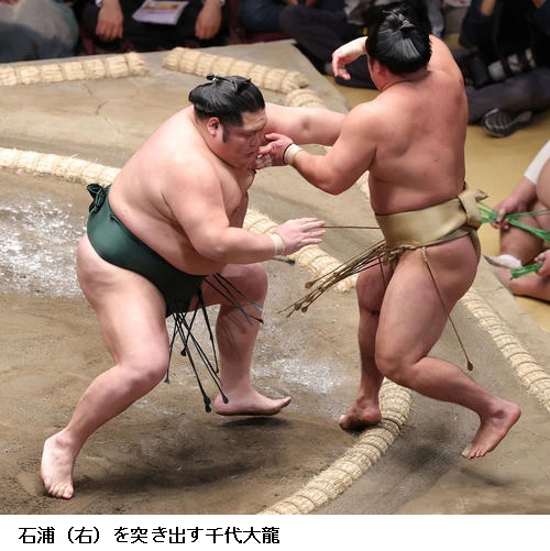 ▽石浦に照強は石浦が寄り切り。