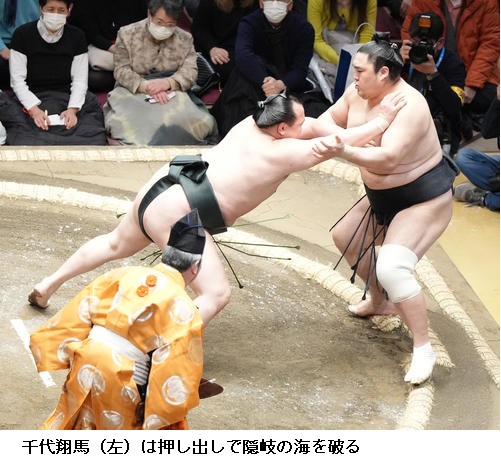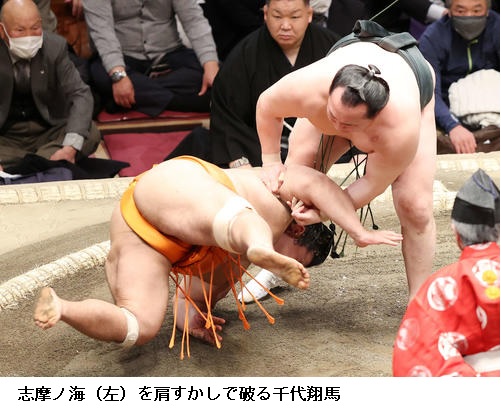 ▽志摩ノ海に千代翔馬は千代翔馬が肩透かし。