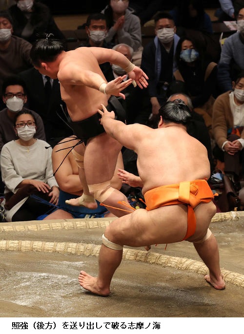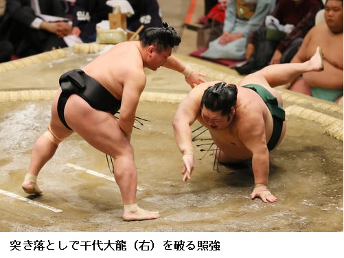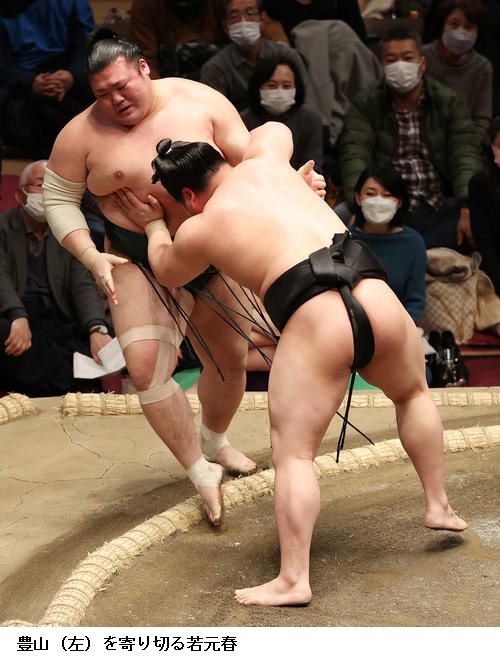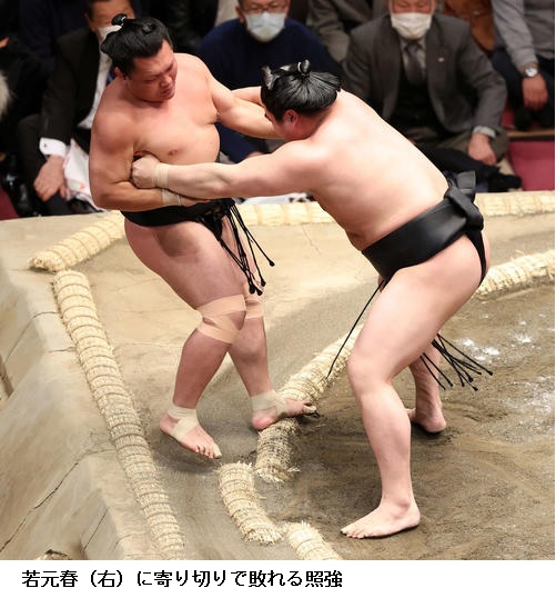 ▽若元春に照強は若元春が寄り切り。