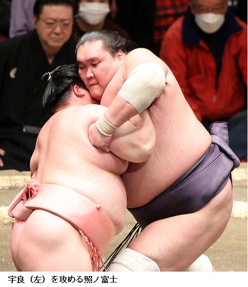 3場所連続優勝がかかる横綱・照ノ富士は小結・大栄翔の突き押しをしのいで白星をあげ、「ちゃんと受けていこうと思っていたが、ああいう相撲になってしまった」と反省した上で「始まったばかりなので、残り気合いを入れていきたい。一生懸命やるだけだ」と淡々と話していました。