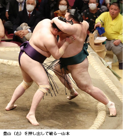○豊山 先手先手で動けてよかった。初日にしてはよかったと思います。大関(正代)とも年明け前から稽古していたので体の調子はいいです。上位に戻るための足がかりを作りたいと思います。