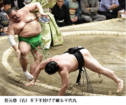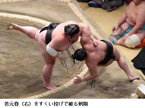 ☆若元春「体は動いていると思います。下手はささらず、上手も取れず。ほめられたものではない相撲で最後ははたいたが、勝ててよかった。星は意識せず、内容重視でここまでやってきています」