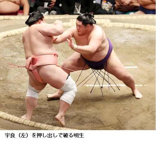 ▽明生に玉鷲は玉鷲が押し出し。