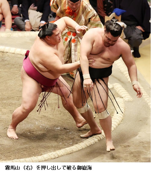 ▽御嶽海に隠岐の海は、御嶽海が寄り切りで初日から9連勝としました。