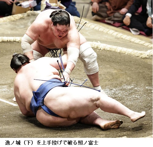 ▽横綱 照ノ富士に大栄翔は照ノ富士がはたき込みで勝ちました。