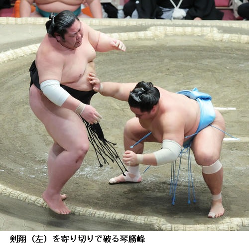 ▽剣翔に十両の琴勝峰は琴勝峰が寄り切りで勝ちました。