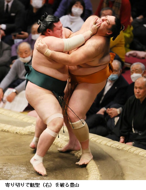 ▽豊山に魁聖は豊山が寄り切り。