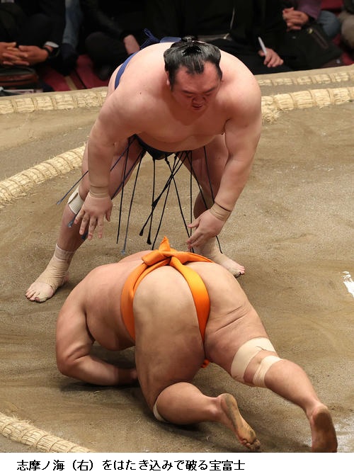 ▽宝富士に志摩ノ海は宝富士がはたき込み。