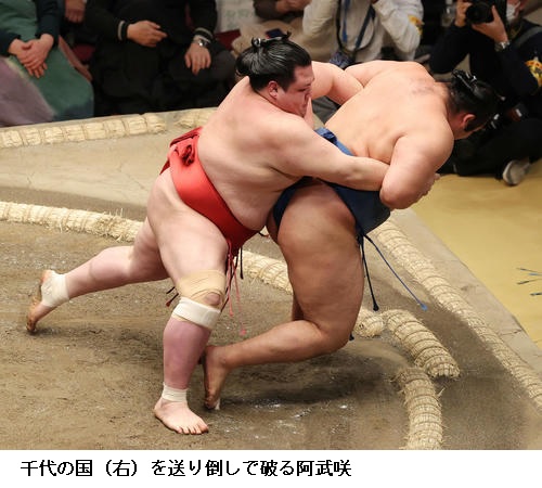 ▽千代の国に阿武咲は阿武咲が送り倒し。千代の国は負け越しです。