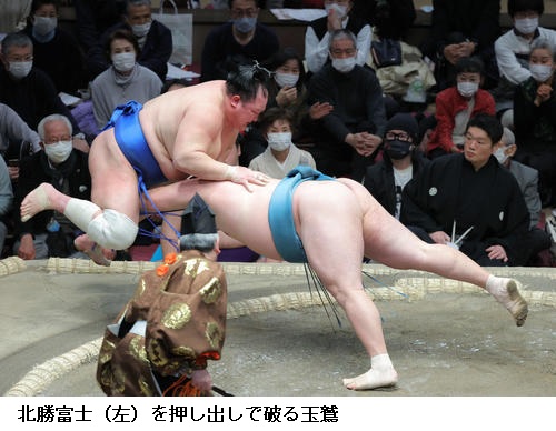 ▽北勝富士に玉鷲は玉鷲が押し出し。