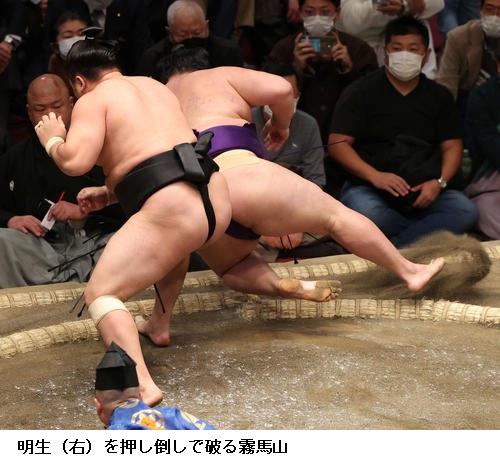 ▽霧馬山に明生は霧馬山が押し倒し。