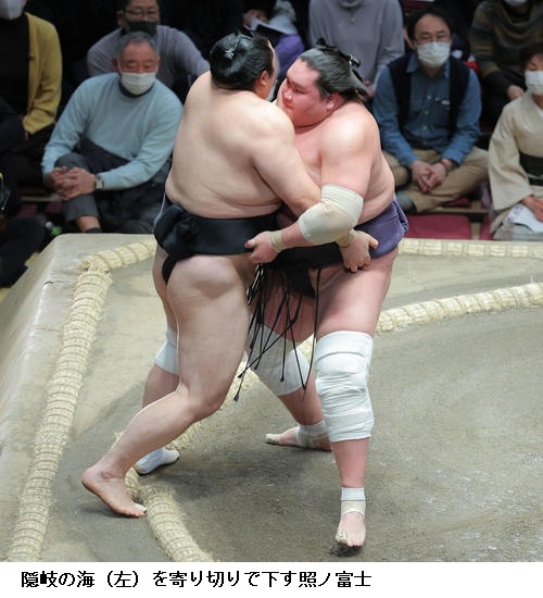☆照ノ富士 正面においていこうと思っていました。落ち着いてやれたんじゃないかと思います。(昨年秋場所13日目から20連勝)特に考えてもない。別にそういうことにこだわっているわけじゃないので。 (NHK WEB NEWS 2022年1月10日 19時01分)