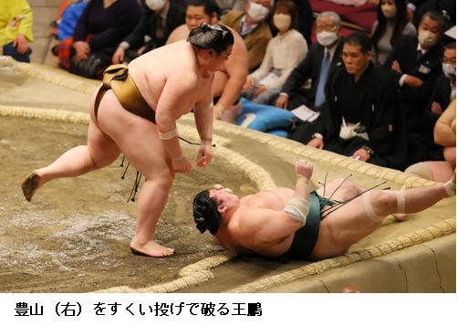 ▽王鵬に豊山は王鵬がすくい投げ。